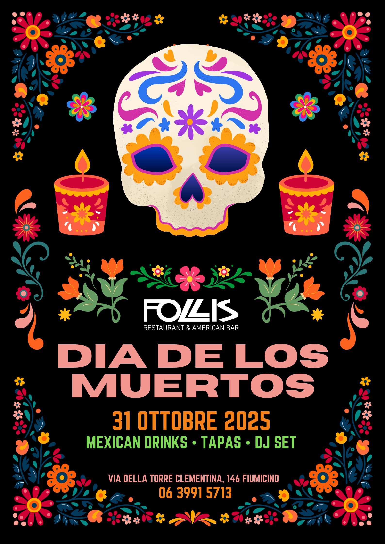 Día de los Muertos da Follis - 31 Ottobre Dimentica la solita festa di Halloween! Il 31 ottobre Follis si trasforma per celebrare il tradizionale Día de los Muertos messicano. Una serata speciale che unisce sapori autentici e atmosfera festosa: gusta tapas ispirate alla cucina messicana, sorseggia cocktail dedicati e sorprendenti mentre ti lasci trasportare dalla musica dei nostri dj set. Un'esperienza immersiva
